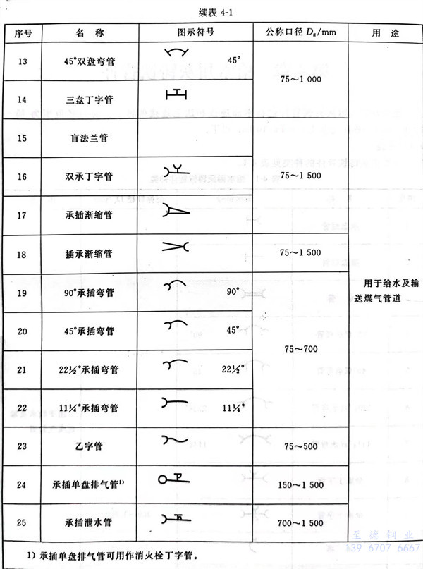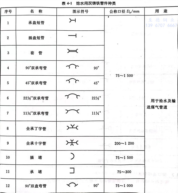 給水用灰鑄鐵管件的種(zhong)類見表4-1。