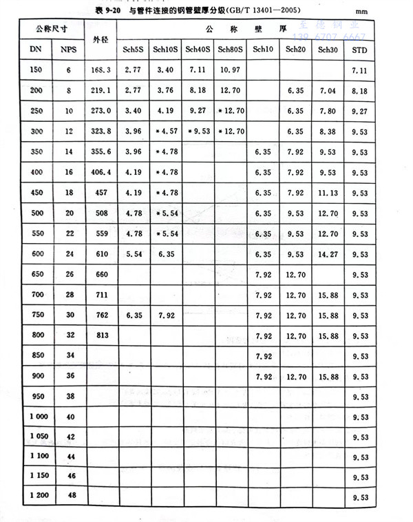 與(yu)管(guan)件連(lian)接的鋼管(guan)的壁厚(hou)分級見表 9-20.
