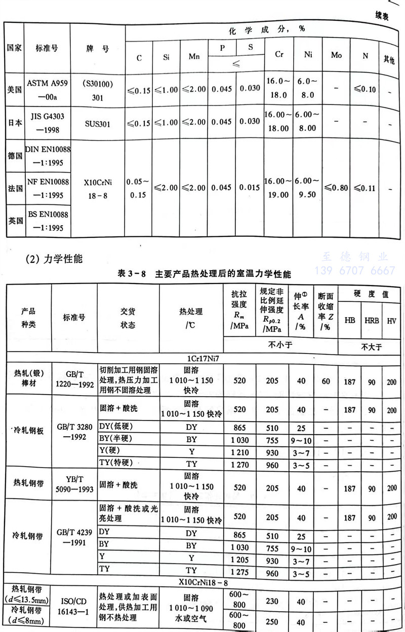 S30110 1Cr17Ni7 不銹鋼主要特性(xing)和(he)用途