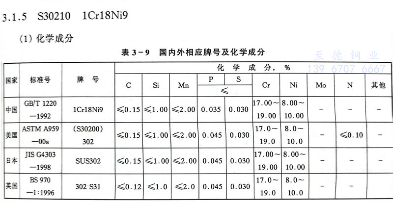 S30210 1Cr18Ni9 不銹鋼主要(yao)特性和(he)用途