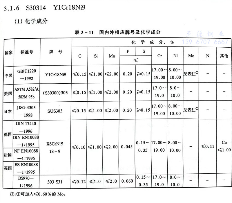 S30314 Y1Cr18Ni9 不銹鋼主要特性和用途(tu)