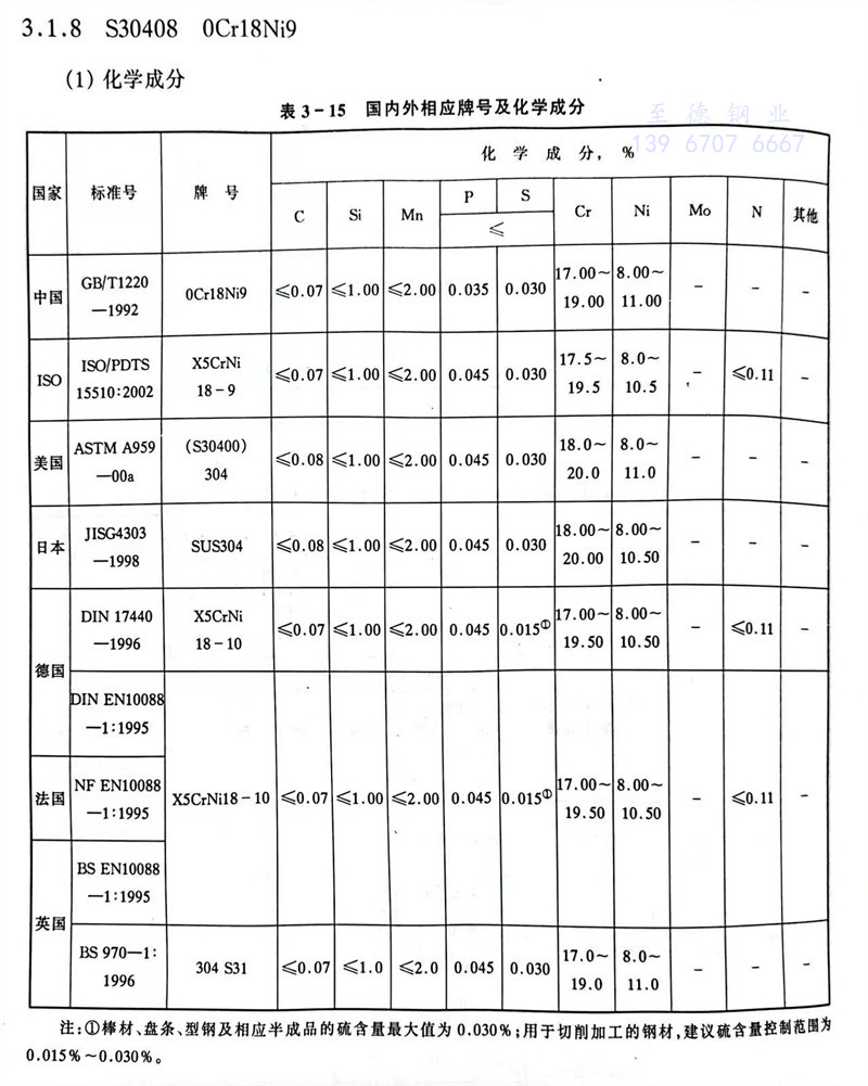S30408 0Cr18Ni9 不銹鋼主要特性和用途