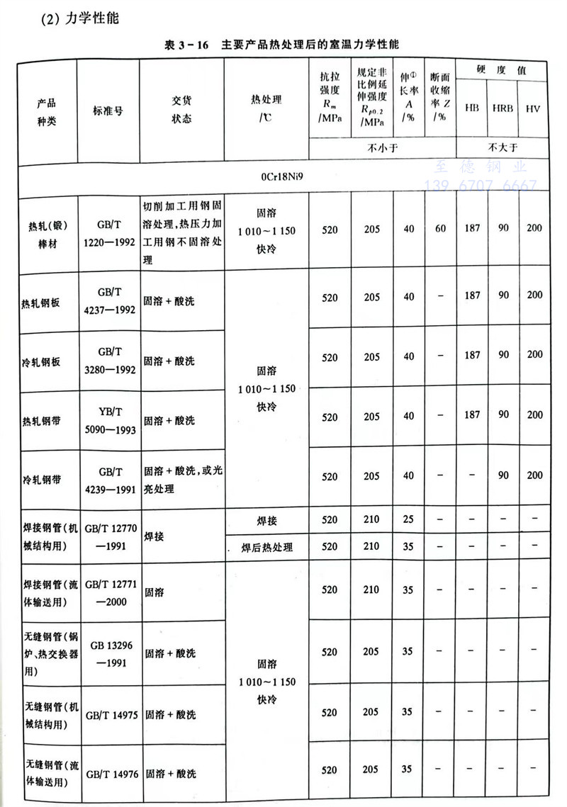 是(shi)奧氏體型(xing)不(bu)銹(xiu)鋼中生(sheng)產量(liang)和(he)使(shi)用量(liang)最大(da)的牌號之一。具有(you)(you)優良(liang)的耐腐(fu)蝕性(xing)(xing)能以及冷(leng)加工沖壓性(xing)(xing)能。對(dui)氧(yang)化(hua)性(xing)(xing)酸(suan)(如硝酸(suan))具有(you)(you)很強的耐腐(fu)蝕性(xing)(xing)。對(dui)堿溶液及大(da)部分有(you)(you)機酸(suan)和(he)無機酸(suan)亦有(you)(you)一定的耐腐(fu)蝕能力(li)。低溫性(xing)(xing)能較好,在-180℃條件下強度、伸長(chang)率和(he)斷面收縮率都很好。