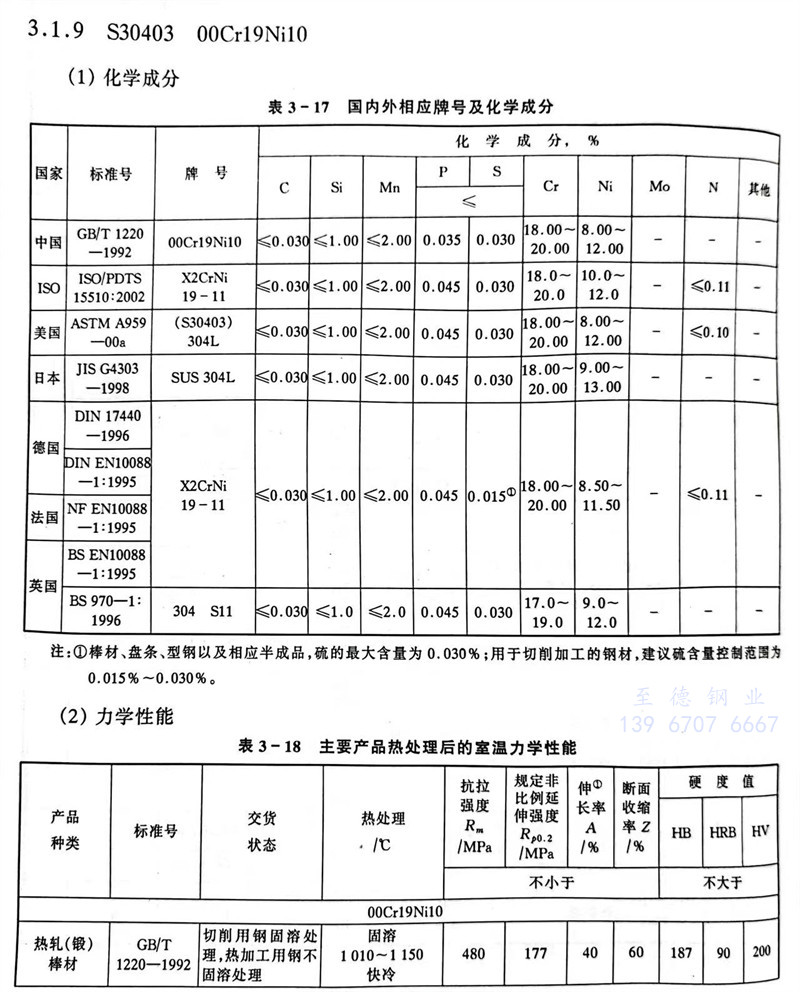 S30403 00Cr19Ni10 不銹(xiu)鋼主要特性和用途