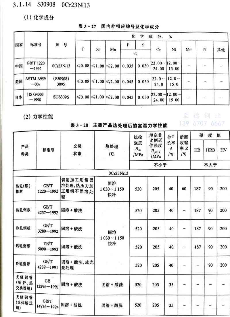 S30908 0Cr23Ni13 不銹鋼主要特(te)性和用途