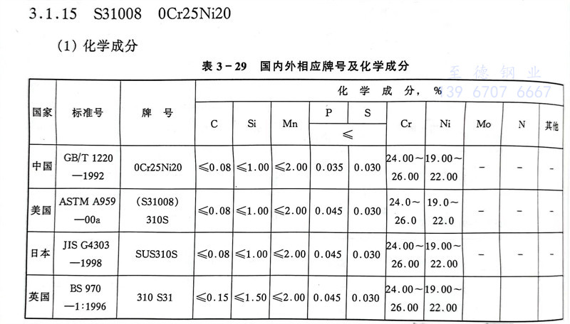 S31008 0Cr25Ni20 不銹鋼主要(yao)特(te)性和用(yong)途