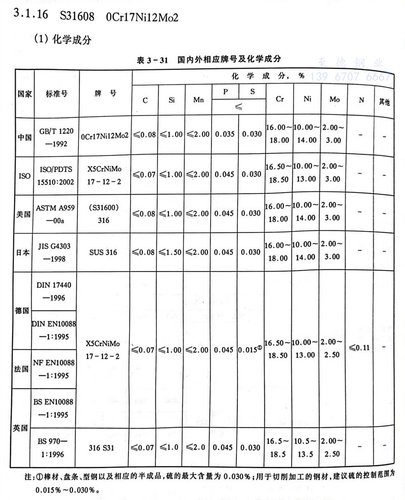 典型的、常用的一種奧氏體不(bu)銹鋼,在稀的還原性介質如硫酸、磷酸和醋酸、甲酸以及海水和其他介質中,耐腐蝕性優于不含Mo的0Cr19Ni9鋼。