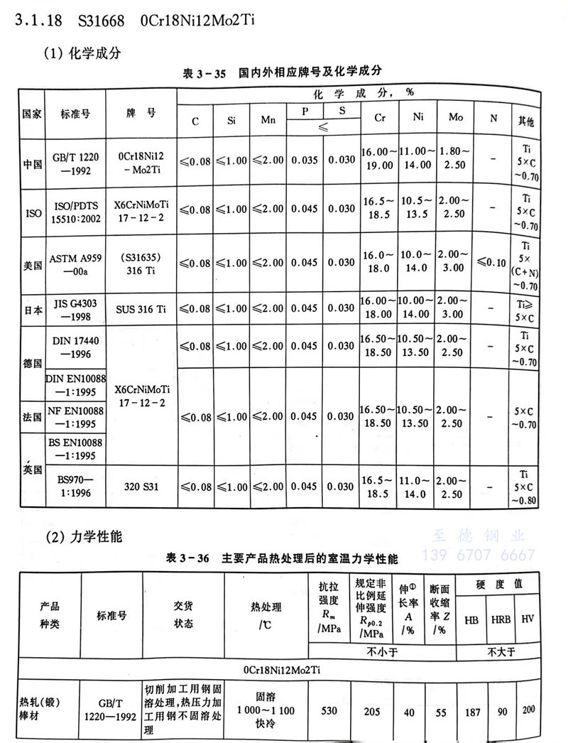 S31668 0Cr18Ni12Mo2Ti 不(bu)銹(xiu)鋼主要特性和用途