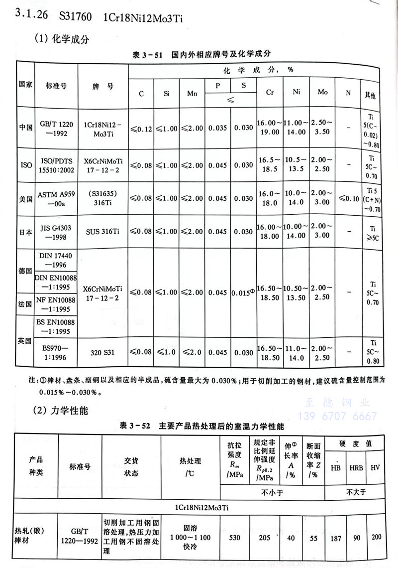 S31760 1Cr18Ni12Mo3Ti 不銹(xiu)鋼主要(yao)特(te)性(xing)和用途