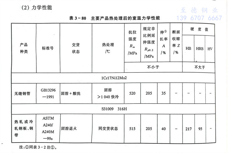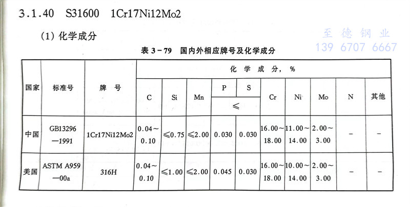 性能與0Cr17Ni12Mo2相近,但碳含量常處于0Cr17Ni12Mo2 不銹鋼的上限。多用于熱強性能較不含鉬鋼要求更高的耐熱用途,例如制造鍋爐過熱器、熱交換器、冷凝器、催化管等的不銹鋼管及管件。