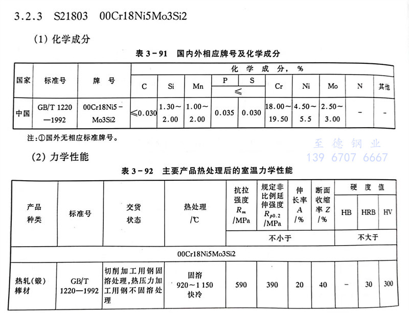 S21803 00Cr18Ni5Mo3Si2 不銹(xiu)鋼主要特性和(he)用途(tu)