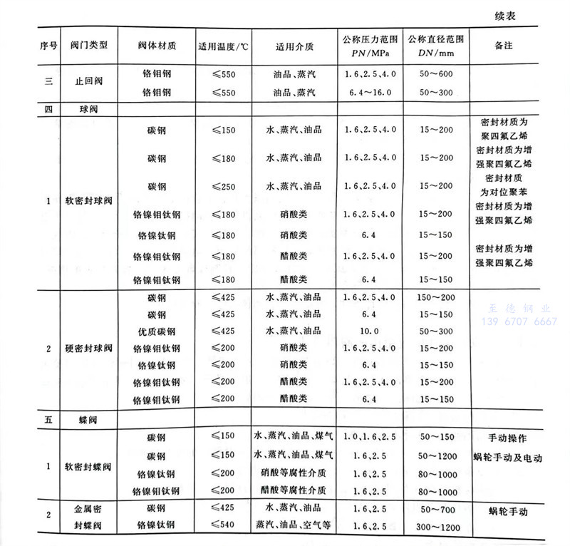常用閥門適用范圍介紹