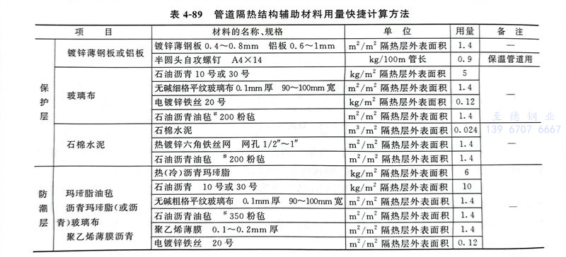 管道隔(ge)熱(re)結構輔助材料用量快(kuai)捷計算方法見表4-89。