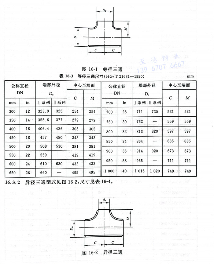 a. 等徑三通型式見(jian)圖 16-1 ,尺(chi)寸見(jian)表(biao) 16-3 。