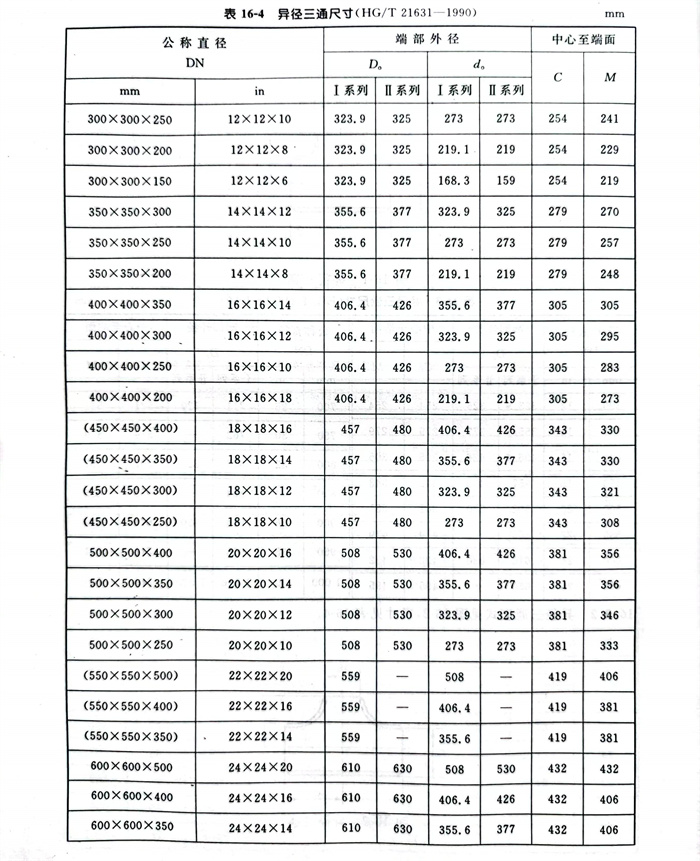 b. 異徑三通型式見圖 16-2 ,尺(chi)寸見表 16-4 。