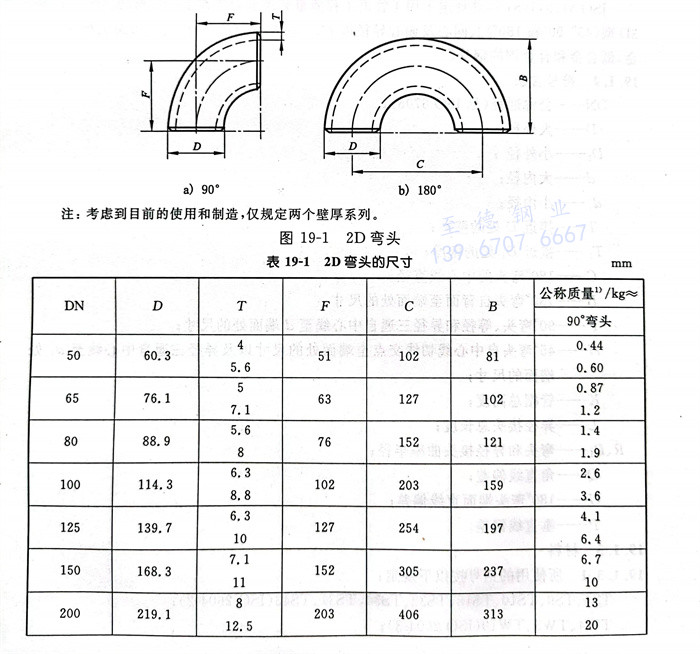 2D彎頭(tou)型式見(jian)(jian)圖19-1,尺寸見(jian)(jian)表19-1。