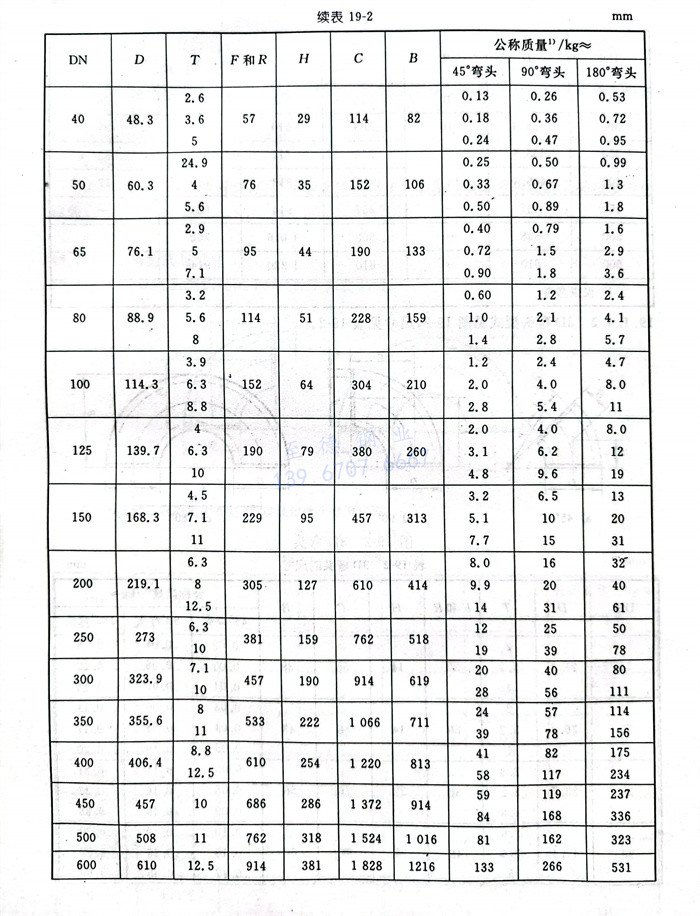 3D彎頭(tou)型(xing)式見圖19-2,尺寸見表19-2。
