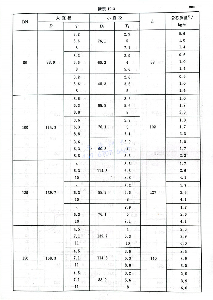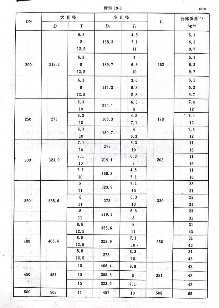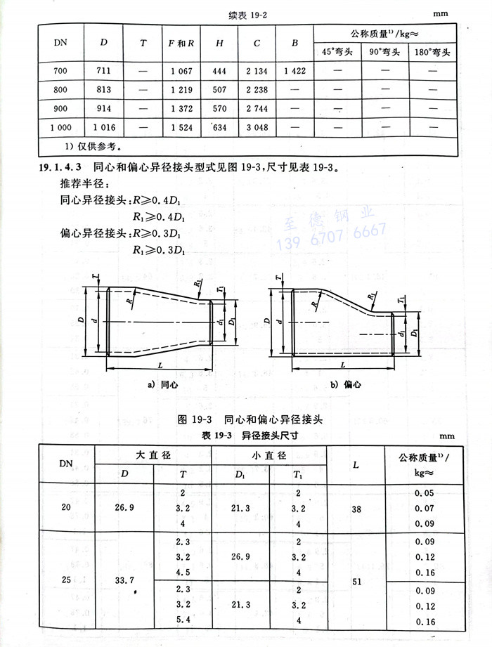 同心和偏心異徑接頭型式見(jian)圖19-3,尺寸(cun)見(jian)表(biao)19-3。