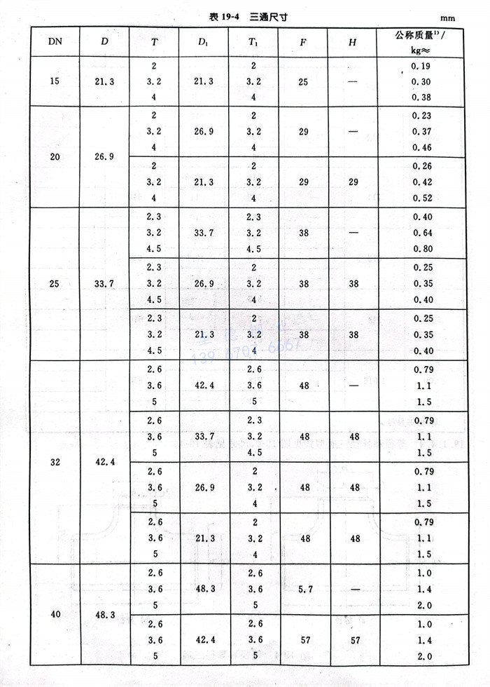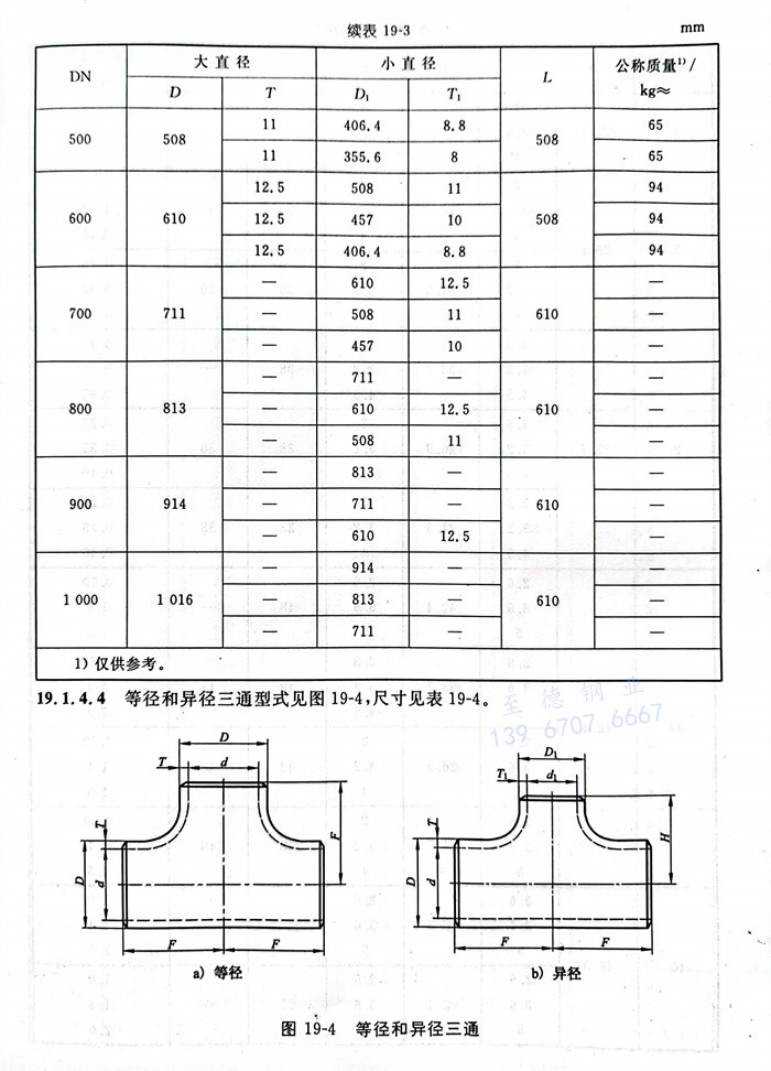 等(deng)徑(jing)和異徑(jing)三(san)通型(xing)式(shi)見圖19-4,尺寸見表19-4。