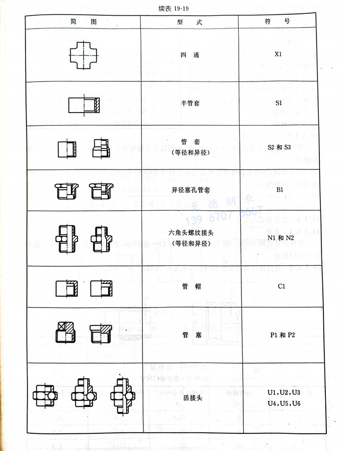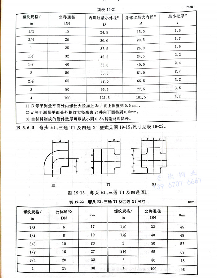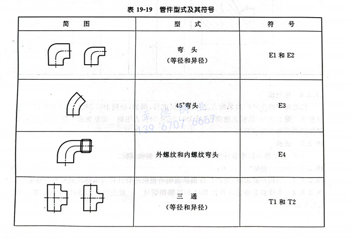 彎頭(tou) E1、三通 T1 及四通 X1 型式見圖(tu)19-15,尺(chi)寸見表19-22。