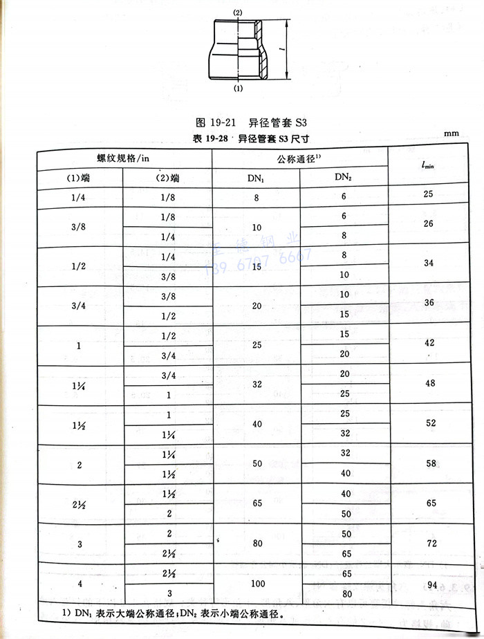 異徑管套S3 型式見圖19-21,尺寸見表(biao)19-28。