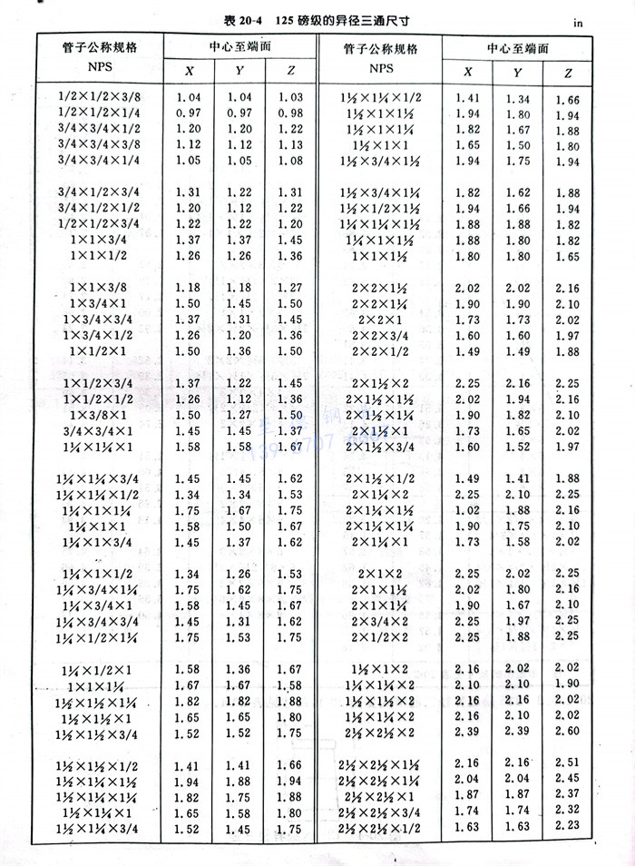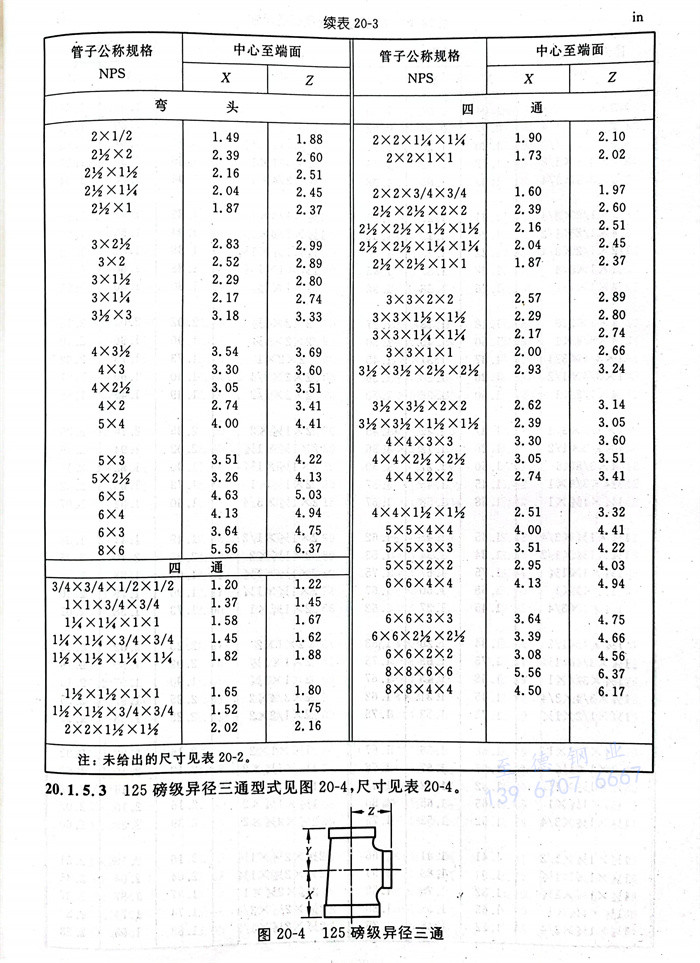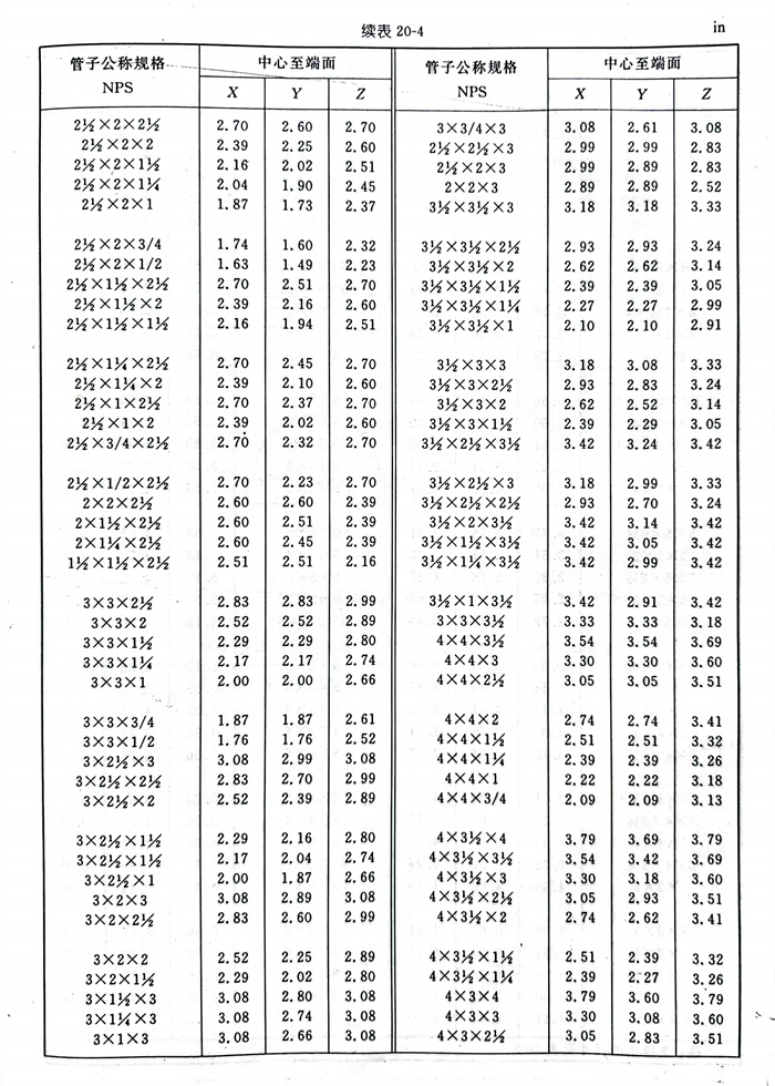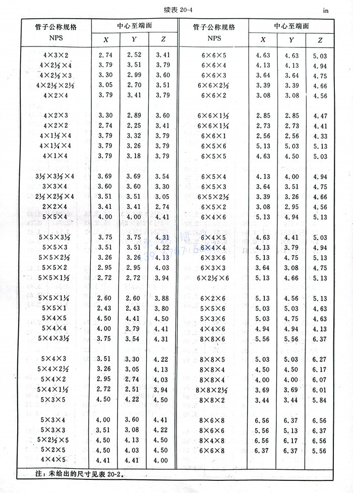 管(guan)(guan)件(jian)中心到(dao)端(duan)面的(de)尺寸允許公(gong)差(cha)見表20-7(檢驗公(gong)差(cha))。端(duan)面到(dao)端(duan)面的(de)尺寸公(gong)差(cha)及接頭(tou)和異徑接頭(tou)的(de)長度公(gong)差(cha)應為表20-7中所列(lie)值(zhi)的(de)兩倍。控(kong)制(zhi)異徑管(guan)(guan)件(jian)最(zui)大開(kai)孔(kong)尺寸的(de)公(gong)差(cha)應適用于所有開(kai)孔(kong)。這些公(gong)差(cha)不適用于180°彎頭(tou)和管(guan)(guan)帽(mao)。