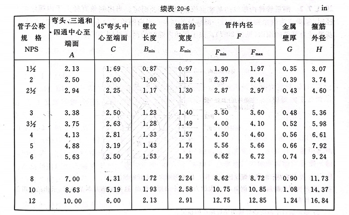 1. 表20-2~表20-6中(zhong)所排定的(de)管(guan)件規格是用相(xiang)應的(de)管(guan)子公稱規格(NPS)來識別的(de)。