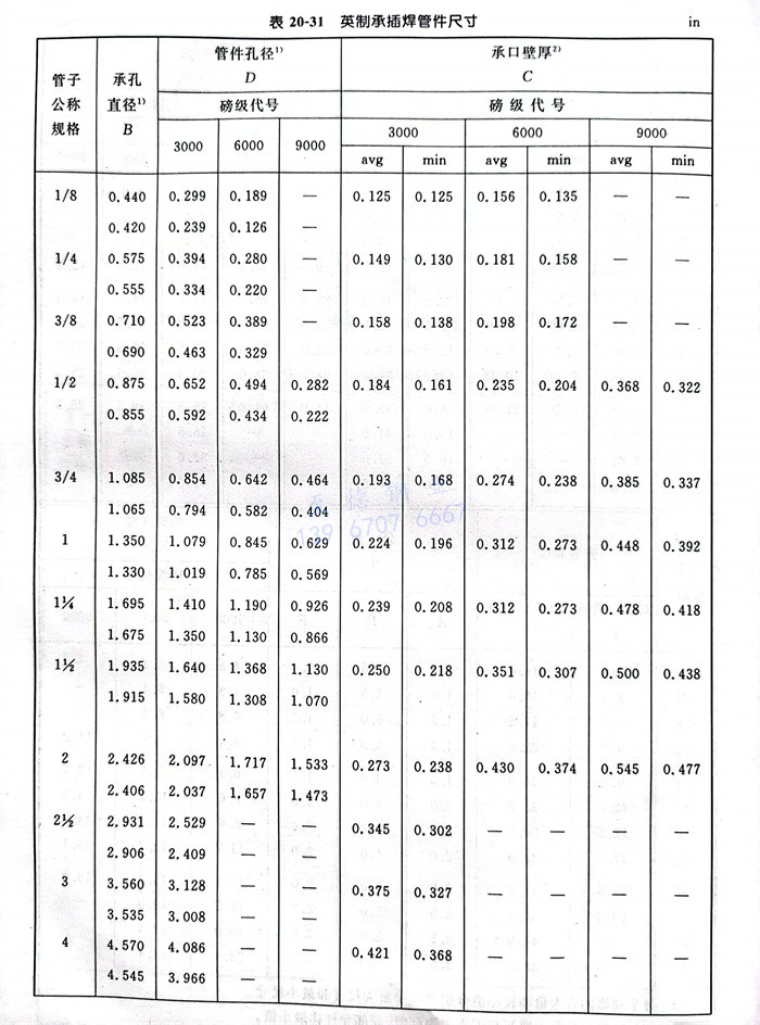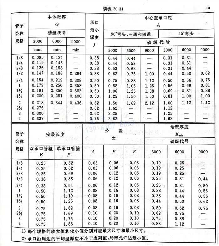 承插焊管件本(ben)體壁厚(hou)應等于或大于表20-30和20-31中所示(shi)的G值。