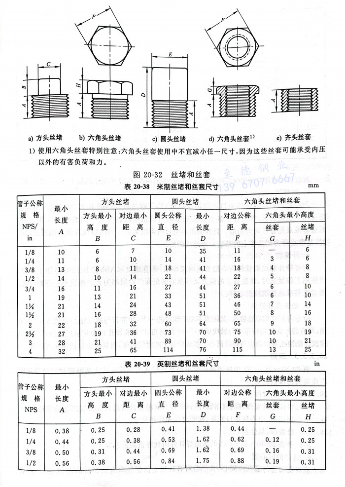 米(mi)制(zhi)(zhi)絲(si)(si)(si)堵和(he)絲(si)(si)(si)套的(de)型式(shi)見(jian)圖20-32,尺寸見(jian)表(biao)20-38;英(ying)制(zhi)(zhi)絲(si)(si)(si)堵和(he)絲(si)(si)(si)套的(de)型式(shi)見(jian)圖20-32,尺寸見(jian)表(biao)20-39。