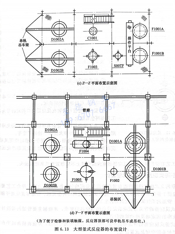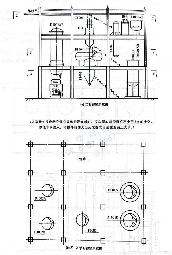大型釜(fu)式反應器的布局設計(ji)見圖 6-13