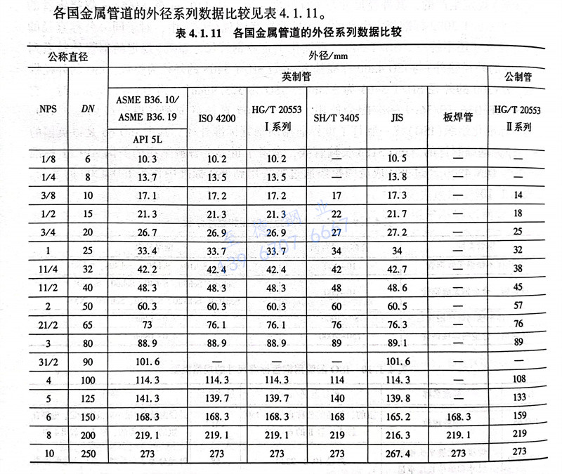 各國金屬(shu)管道的外徑系(xi)列數據比較見表4.1.11。