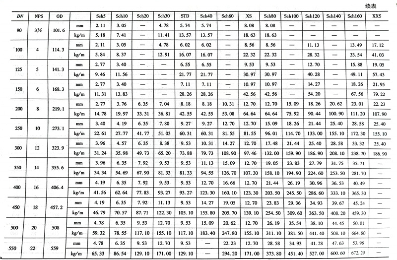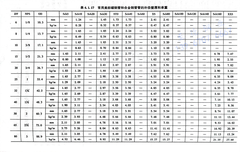 根據ASME B36.10,常(chang)用美標碳鋼管和合金(jin)鋼管管的外徑壁(bi)厚和單(dan)重見表(biao)4.1.17。