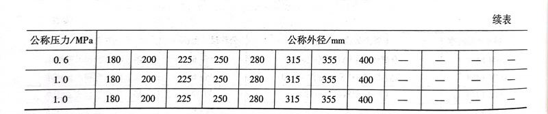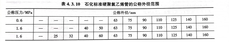 表4.3.10 石化標準硬聚氯乙(yi)烯(xi)管的(de)公稱外徑范圍