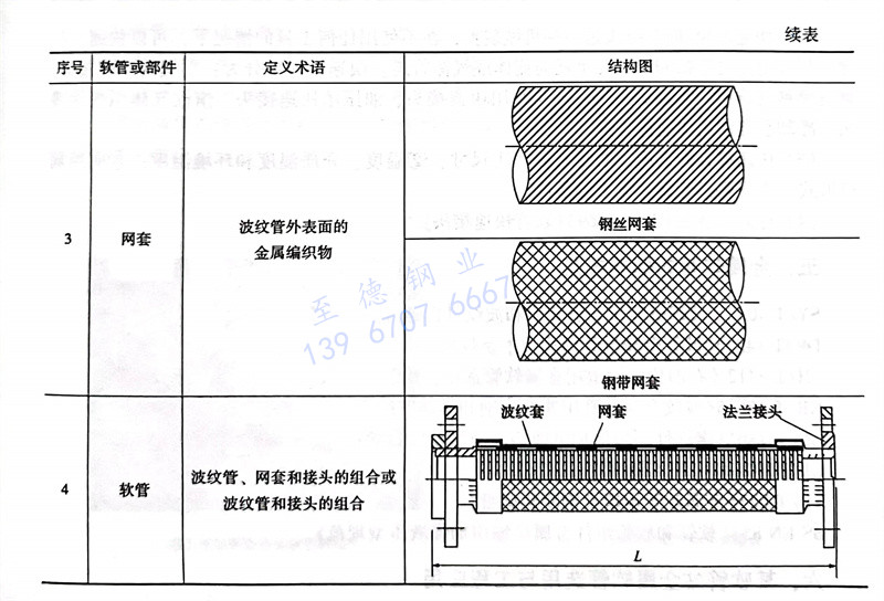 金屬(shu)軟管(guan)是(shi)由(you)管(guan)體(ti)、網套和(he)連(lian)(lian)(lian)接(jie)(jie)(jie)(jie)(jie)(jie)件組成(cheng)。其管(guan)體(ti)和(he)網套均為不銹鋼,連(lian)(lian)(lian)接(jie)(jie)(jie)(jie)(jie)(jie)件根據工藝要求(qiu)(qiu)分(fen)為不銹鋼和(he)碳鋼兩種(zhong)。其管(guan)體(ti)波紋又有螺(luo)旋形(xing)和(he)環形(xing)兩種(zhong),按連(lian)(lian)(lian)接(jie)(jie)(jie)(jie)(jie)(jie)形(xing)式可(ke)(ke)分(fen)為法蘭(lan)(lan)(lan)連(lian)(lian)(lian)接(jie)(jie)(jie)(jie)(jie)(jie)和(he)管(guan)接(jie)(jie)(jie)(jie)(jie)(jie)頭(tou)連(lian)(lian)(lian)接(jie)(jie)(jie)(jie)(jie)(jie)兩大類。金屬(shu)軟管(guan)的法蘭(lan)(lan)(lan)可(ke)(ke)根據用戶的不同要求(qiu)(qiu)安裝國際(ji)法蘭(lan)(lan)(lan)、機械(xie)工業部標(biao)準(zhun)(zhun)法蘭(lan)(lan)(lan)、化工部標(biao)準(zhun)(zhun)法蘭(lan)(lan)(lan)等,還可(ke)(ke)進行不同標(biao)準(zhun)(zhun)、不同連(lian)(lian)(lian)界面的法蘭(lan)(lan)(lan)組合。金屬(shu)軟管(guan)的管(guan)接(jie)(jie)(jie)(jie)(jie)(jie)頭(tou)可(ke)(ke)以(yi)是(shi)球頭(tou)外套螺(luo)母、內錐(zhui)接(jie)(jie)(jie)(jie)(jie)(jie)頭(tou)、錐(zhui)管(guan)螺(luo)紋接(jie)(jie)(jie)(jie)(jie)(jie)頭(tou)、櫂槽接(jie)(jie)(jie)(jie)(jie)(jie)頭(tou)、union接(jie)(jie)(jie)(jie)(jie)(jie)頭(tou)、爪(zhua)型(xing)快速接(jie)(jie)(jie)(jie)(jie)(jie)頭(tou)、開(kai)啟式快速接(jie)(jie)(jie)(jie)(jie)(jie)頭(tou)、接(jie)(jie)(jie)(jie)(jie)(jie)管(guan)等,還可(ke)(ke)以(yi)根據用戶要求(qiu)(qiu)進行任意組合。使用非(fei)常靈活、方便(bian),幾(ji)乎不受(shou)任何控制。見表4.5.1。