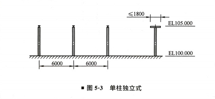 ①. 單柱獨立式:寬度小于或等于1.8m,一般為單層,如圖5-3所示。