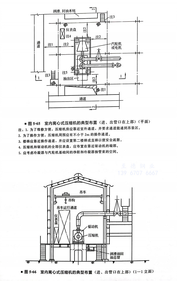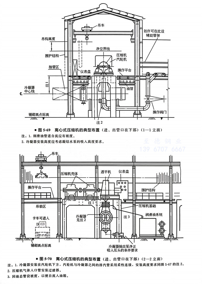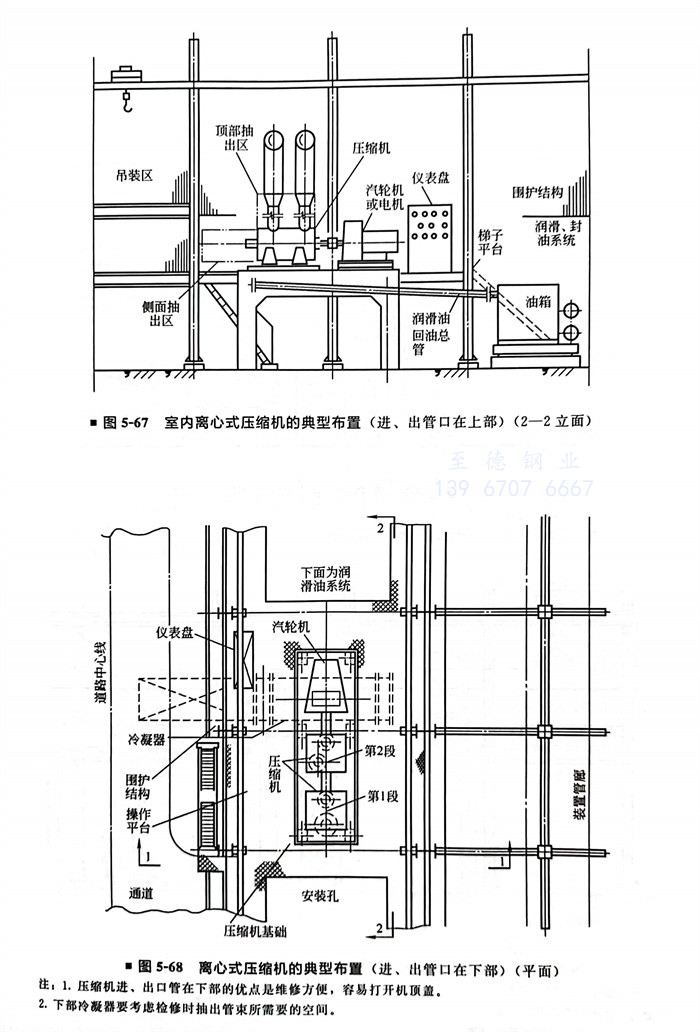 工程實例(li)二 離心式壓縮(suo)機(ji)的典型布置(進、出管口在下部)(圖5-68~圖5-70)
