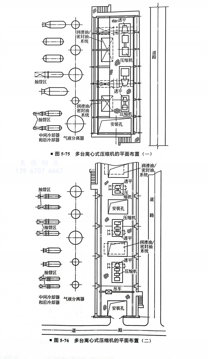 多臺離心(xin)式壓(ya)縮機的平(ping)面布置(zhi)(圖5-75、圖5-76)