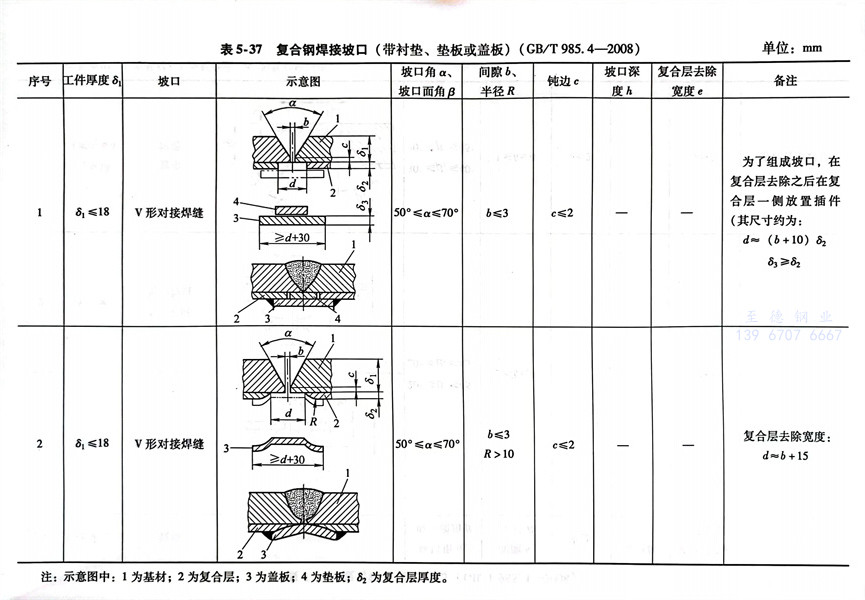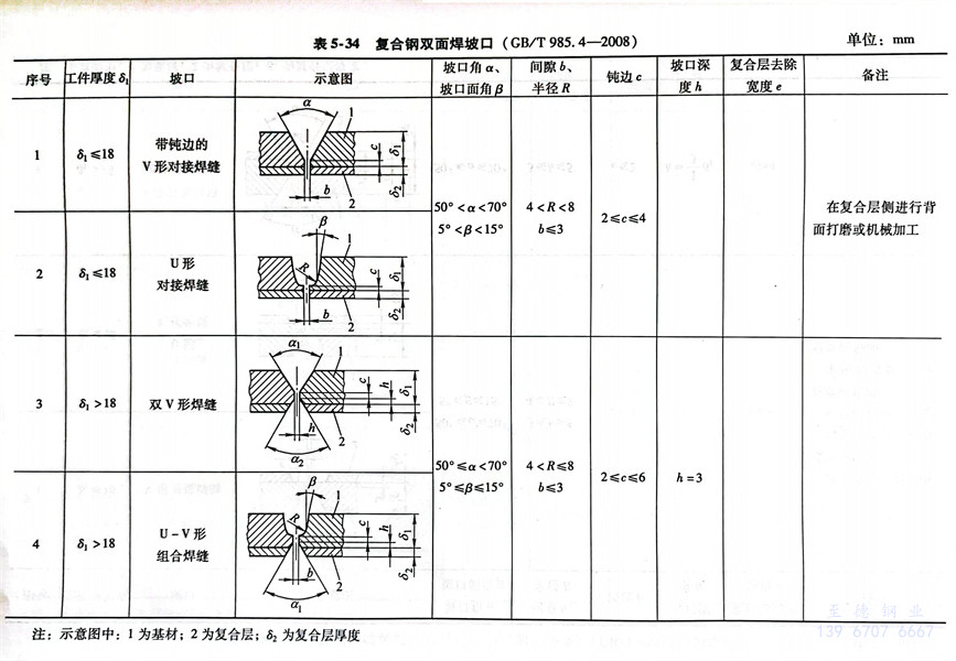 全(quan)國壓力容器(qi)標準化技術委員會推(tui)(tui)薦(jian)《GB/T 985.2-2008復合鋼的推(tui)(tui)薦(jian)坡口》在(zai)壓力容器(qi)及受壓元件使(shi)用(yong),見表5-34~表5-37。