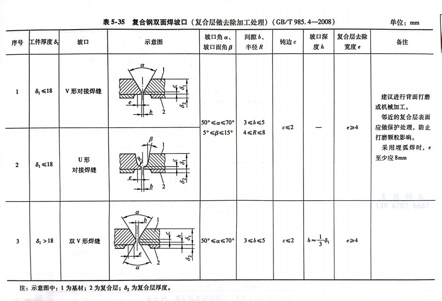 2. 基層(ceng)(ceng)(ceng)一側(ce)和復層(ceng)(ceng)(ceng)一側(ce)的待焊處(chu),應分別(bie)使用(yong)專用(yong)砂輪和鋼(gang)絲刷(shua)(shua)等工具修磨(mo),基層(ceng)(ceng)(ceng)側(ce)必(bi)須使用(yong)碳(tan)鋼(gang)鋼(gang)絲刷(shua)(shua),而(er)復層(ceng)(ceng)(ceng)側(ce)必(bi)須使用(yong)不銹鋼(gang)的鋼(gang)絲刷(shua)(shua)。