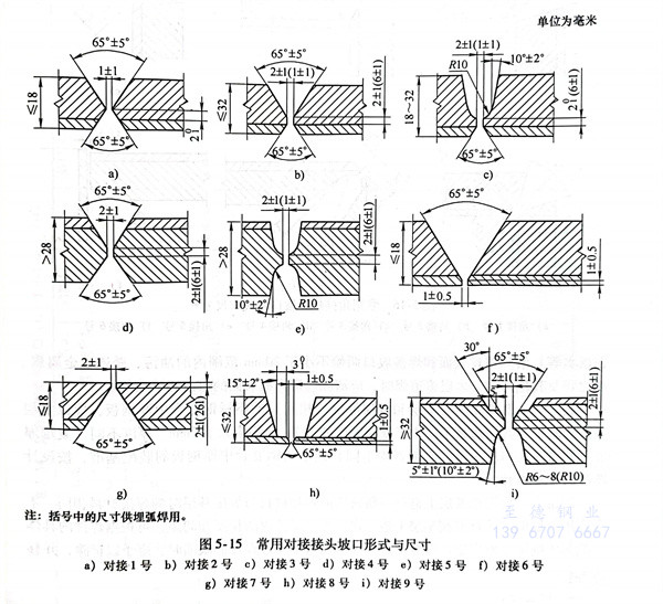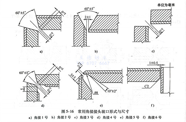 常用對接接頭和角接接頭的坡口形式及尺寸如圖 5-15 和 圖 5-16 (摘(zhai)自GB/T 13148-2008)所示。
