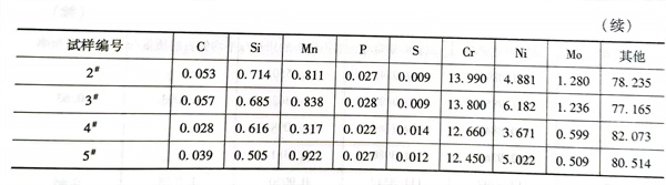選水輪機母材為ZG06Cr13Ni5Mo鋼,并將定(ding)義為0#試(shi)樣,其主要成分見表5-75。用E410NiMo藥芯焊(han)(han)絲堆(dui)焊(han)(han)3層(ceng),按表5-76堆(dui)焊(han)(han)參(can)數所制備的堆(dui)焊(han)(han)的試(shi)樣編號為1#、2和3#試(shi)樣。