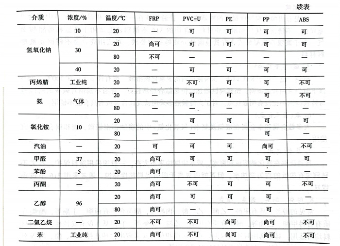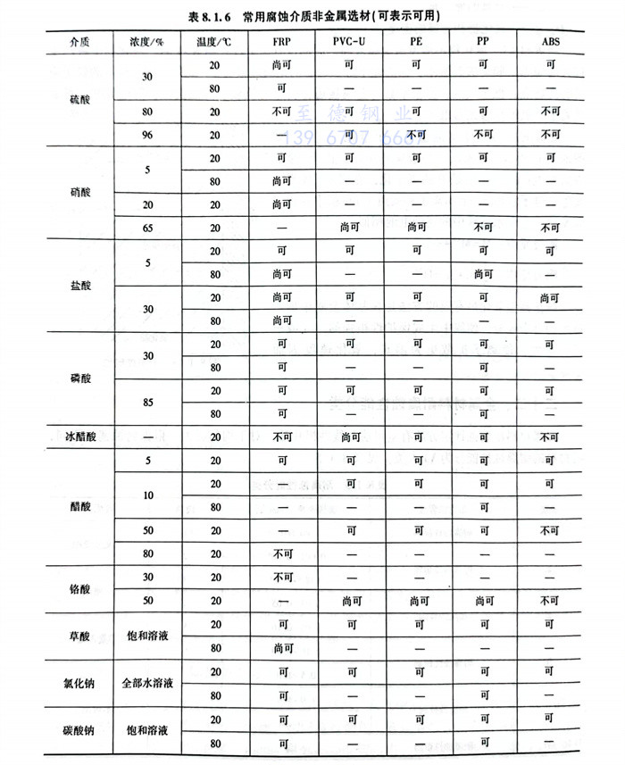 常用腐蝕介質非金屬選材(cai)見表8.1.6。