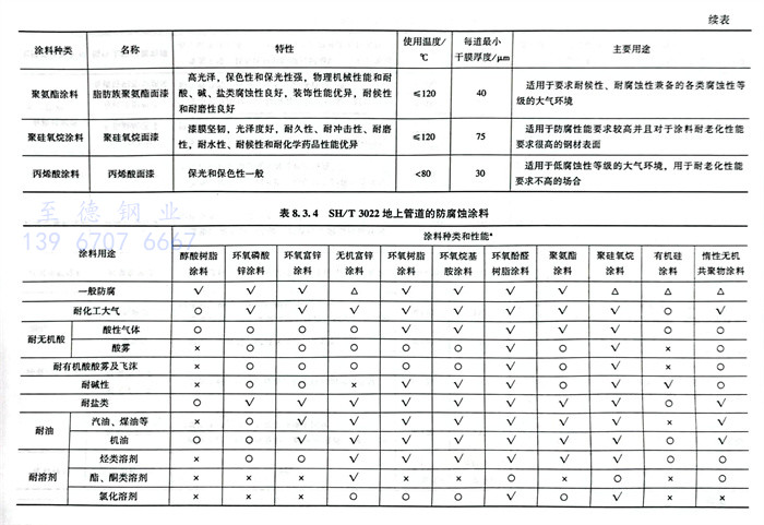 (1)SH/T 3022地(di)上(shang)管(guan)道的防腐蝕(shi)涂料見表8.3.4。