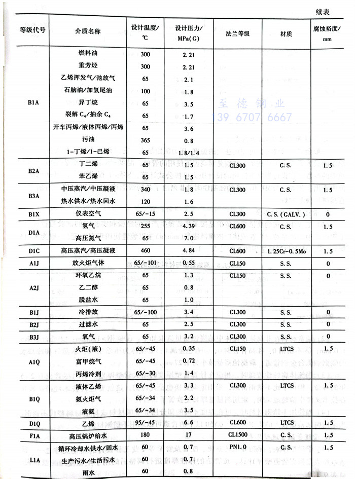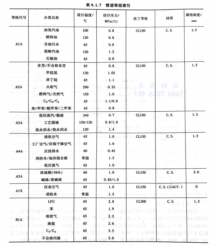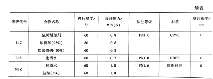 管(guan)(guan)道等(deng)級(ji)索引是一般應有(you)管(guan)(guan)道等(deng)級(ji)代碼、物料(liao)代號、介質(zhi)種類(lei)、設計溫(wen)度、壓力范圍(wei)、管(guan)(guan)子(zi)材料(liao)及尺寸范圍(wei),供工藝(yi)(yi)、儀(yi)表(biao)等(deng)專(zhuan)業使用,是工藝(yi)(yi)專(zhuan)業在基礎設計階(jie)段(duan)設計的(de)主要依據文件。管(guan)(guan)道等(deng)級(ji)索引表(biao)的(de)基本格式應用見表(biao)9.1.7。