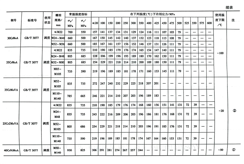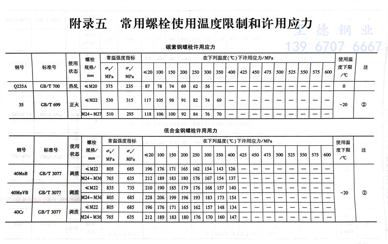 常用螺栓使用溫(wen)度限制(zhi)和許(xu)用應力參(can)照表