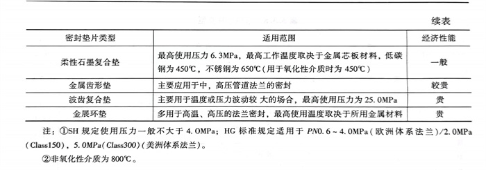 ①. 聚四(si)氟乙(yi)烯包覆墊(dian)片,一般用(yong)于(yu)耐(nai)腐蝕介質(zhi)、防黏(nian)結或介質(zhi)要求純度高(gao)的(de)情況。其最(zui)高(gao)公稱壓力為(wei)PN5.0,最(zui)高(gao)工作溫(wen)度為(wei)150℃。金屬(shu)包覆墊(dian)片的(de)最(zui)高(gao)使用(yong)溫(wen)度見表5.3.2。墊(dian)片標準為(wei)SH/T 3402、HG/T 20609和HG/T 20630等。
