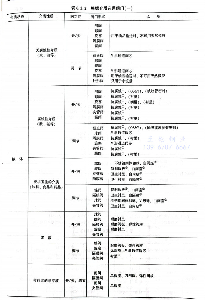 根據場合要(yao)求和介質切斷閥的(de)選用見表(biao) 6.2.6