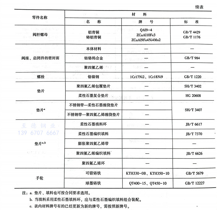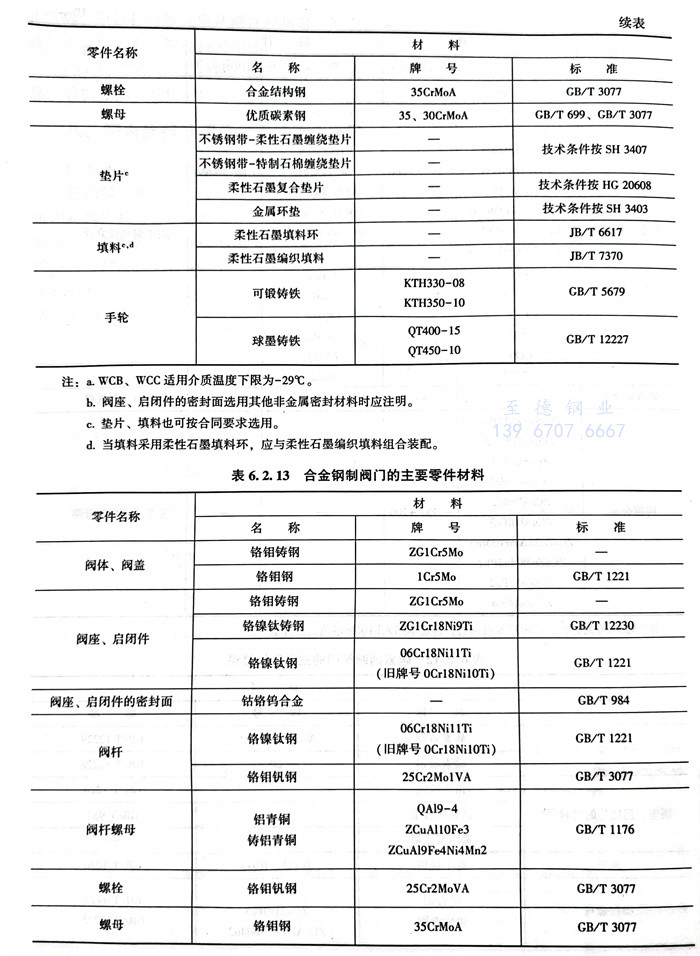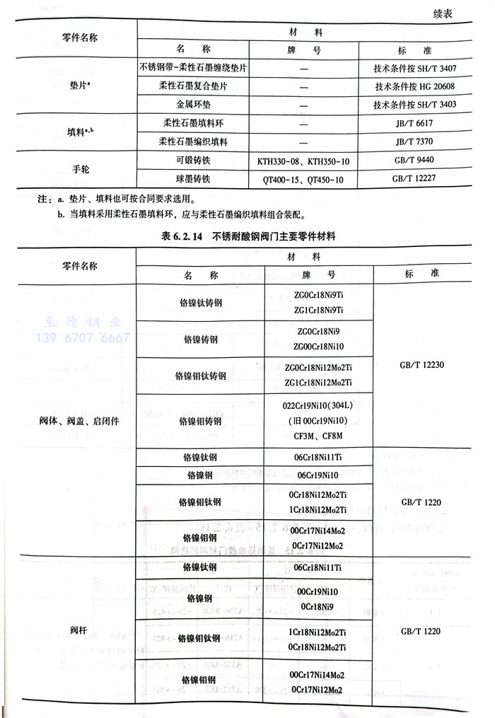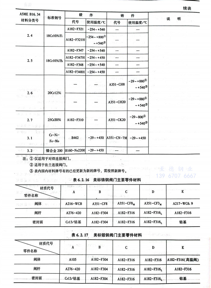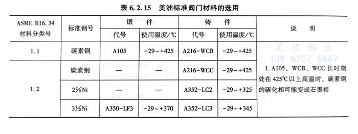 美洲標(biao)準閥門材(cai)料的選用見(jian)表 6.2.15~表 6.2.18