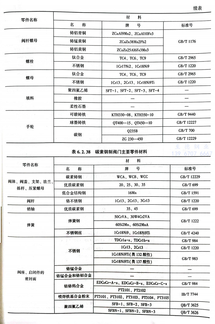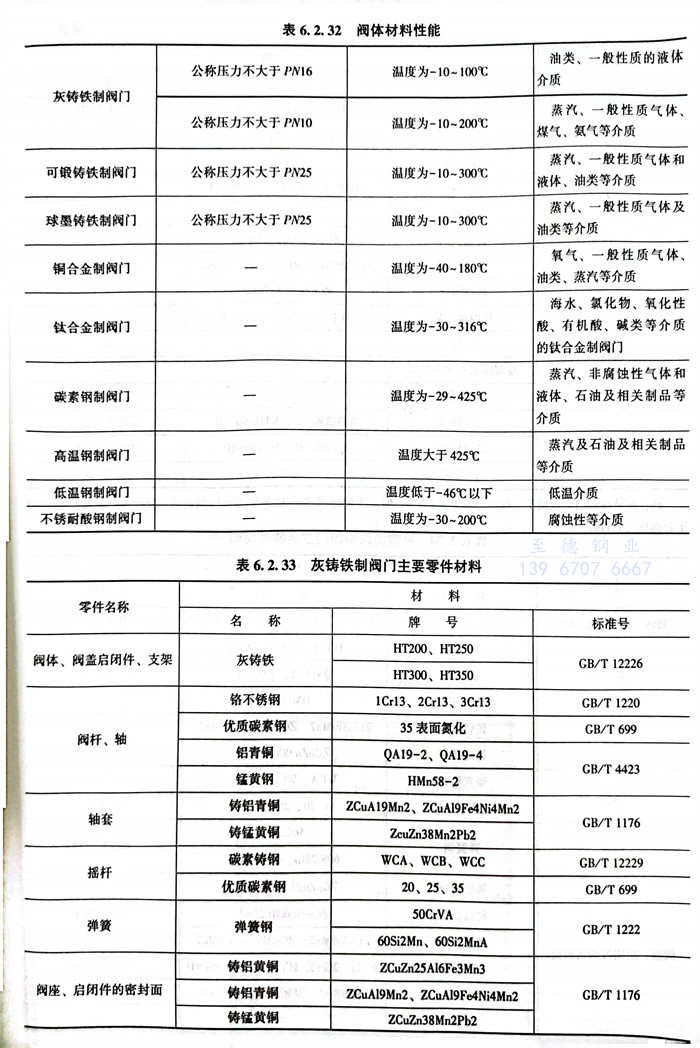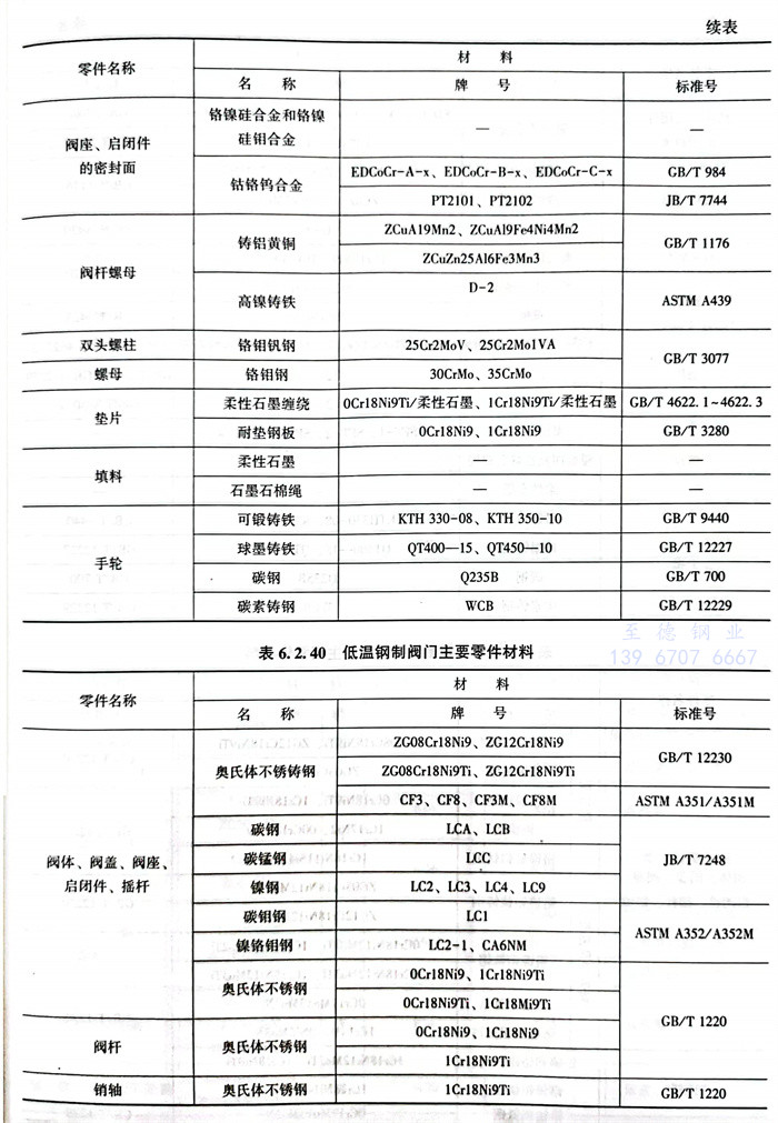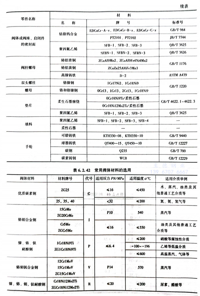 常(chang)用閥體材料的選用主要(yao)依據JB/T5300。見表(biao)6.2.32~表(biao)6.2.42。