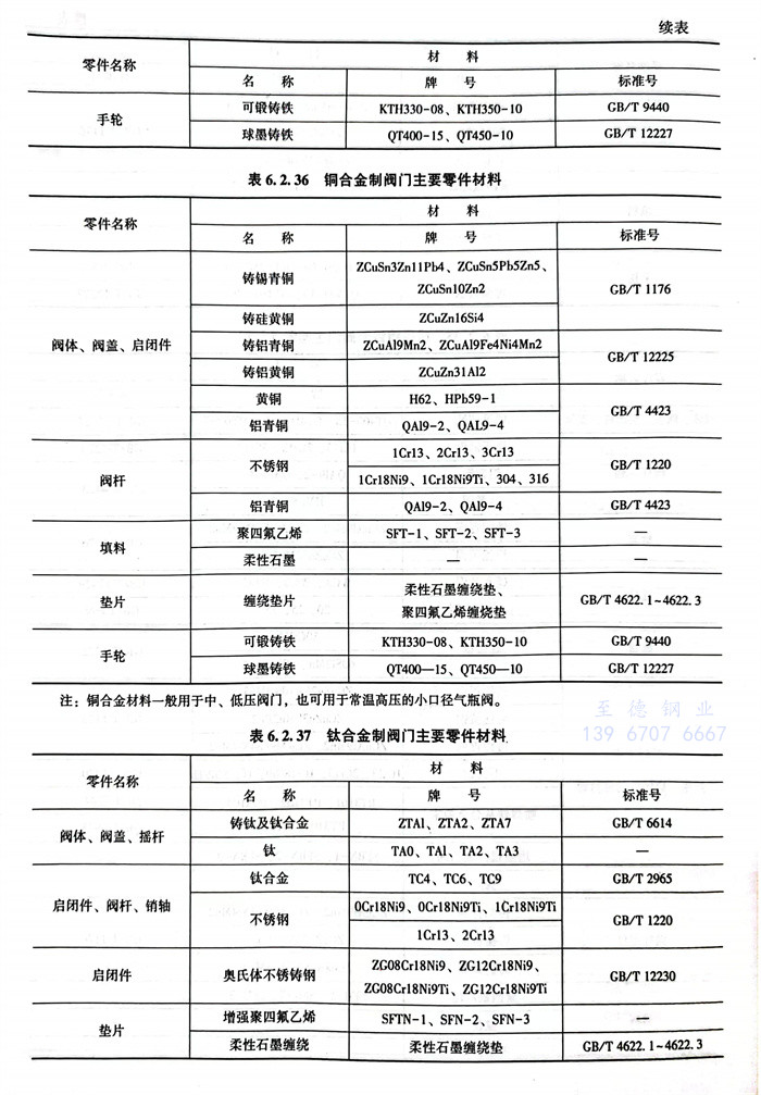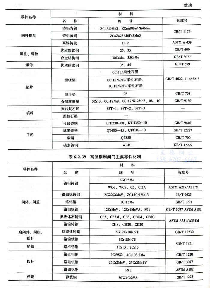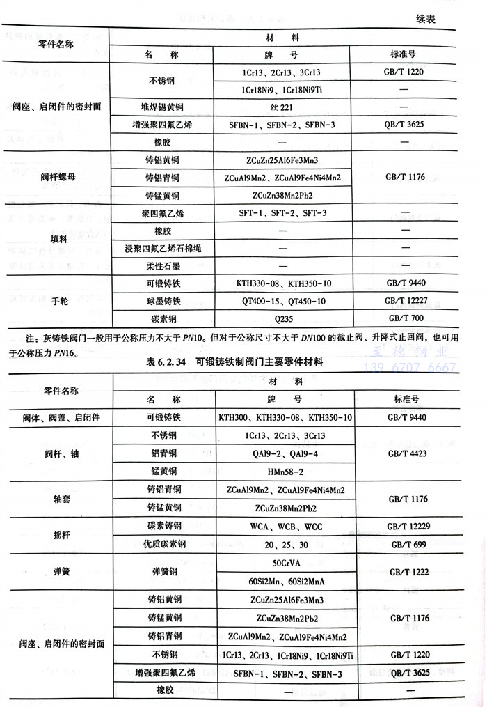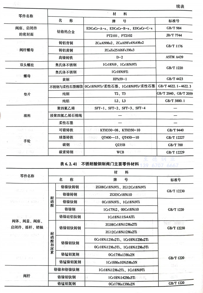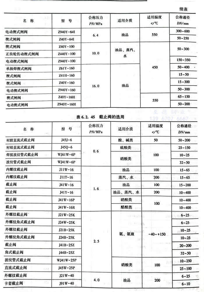 常(chang)用閥體材料的選用主要(yao)依據JB/T5300。見表(biao)6.2.32~表(biao)6.2.42。
